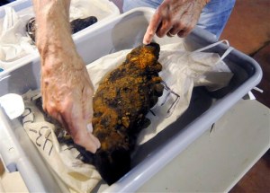 The most significant artifact brought up by Paccione was an odd-shape concretion, sort of a rocky mass that forms when chemical reactions with seawater bind metals together.