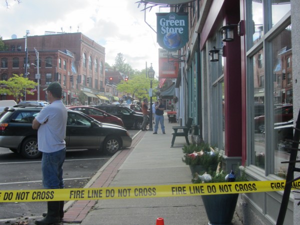 Police reported that someone called in the threat to a business after 2 p.m. Saturday. Police and members of the Fire Department used yellow police tape to close off a section of the north side of Main Street. An officer and fire officials were inside The Green Store.