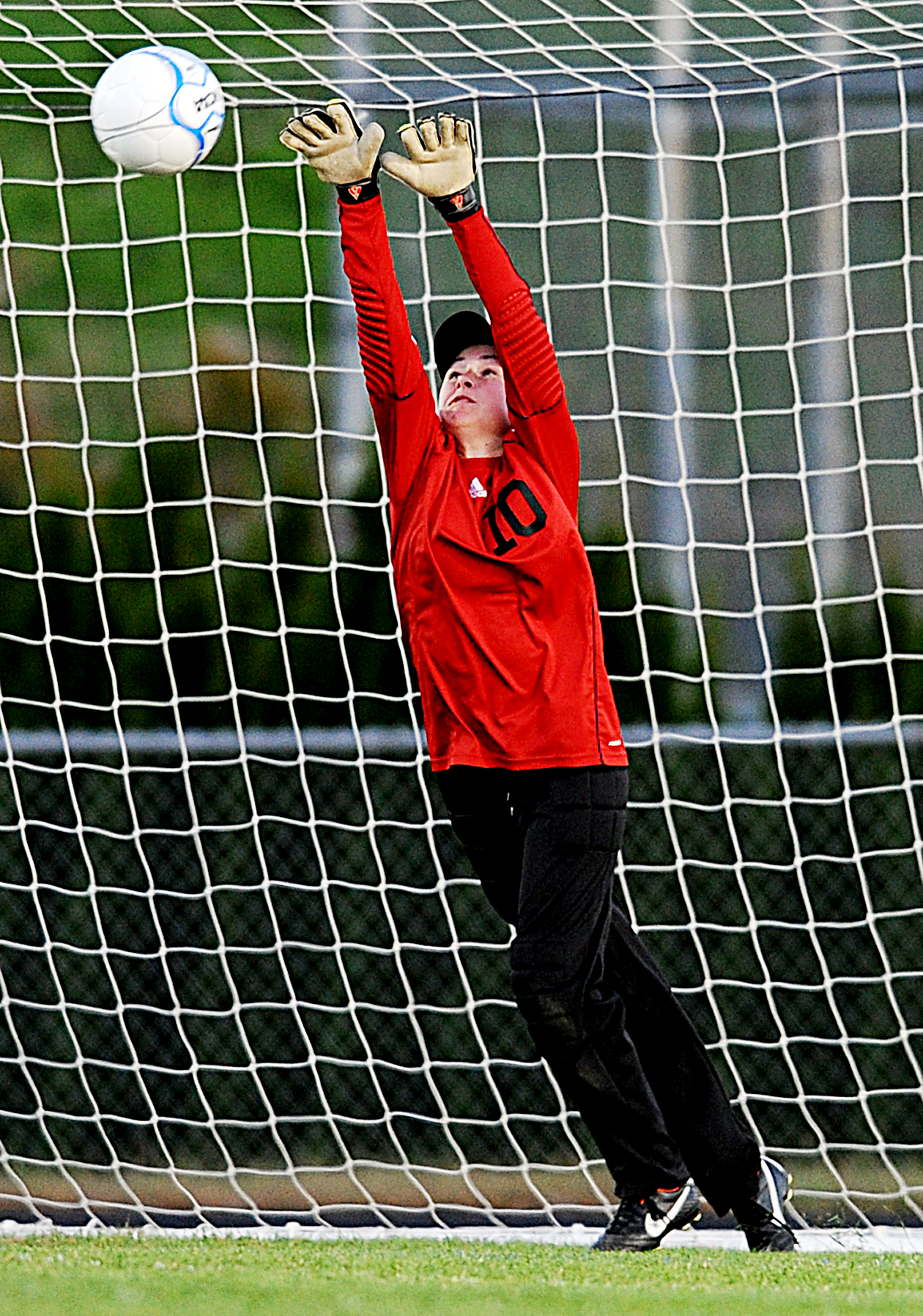 The Blue Devils threatened early in the game with shots by Adela Kalilwa and Kristina Blais. Then with 14:58 left, a loose ball in front went in off an Edward Little defender. Maegan Mathon had gotten a foot on it and steered it toward the left of the goal. Kalilwa was the nearest Blue Devil to the ball when it went in off a defender.