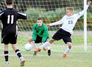 Spruce Mountain’s best opportunity came 10 minutes into the game, when Tristen Begin’s lofting boot from 25 yards away almost sailed over Sawyer’s head. The junior made the midair grab and was never seriously threatened again.