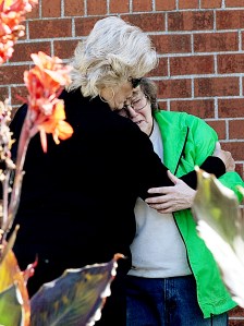 The driver of a Chevrolet Blazer, right, is comforted by an unknown woman after the Blazer and an Isuzu SUV collided at the intersection of Canal and Chestnut streets in Lewiston on Friday afternoon. The driver of the Isuzu was extricated and taken to a local hospital and later released. The police accident report was not available later Friday. The crash remained under investigation.