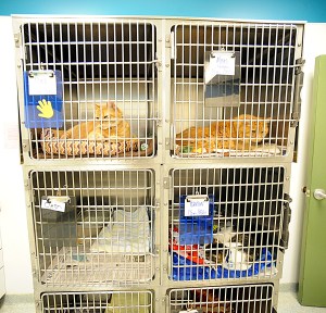 Some of the shelter’s older cats have special needs. Smokey, a 6-year-old long-haired black cat who came with 6-year-old short-haired black cat, Glori, has diabetes and requires insulin and special food. Stumps, a 6-year-old orange cat, has been at the shelter since February and is positive for feline immunodeficiency virus, though he has no symptoms.