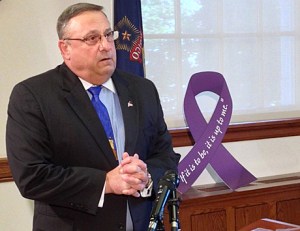 LePage, who left home at age 11 because of an abusive father, has made fighting domestic violence a priority during his term as governor.