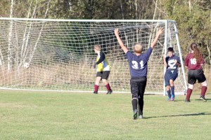 Oxford Hills Christian Academy player Josh Cote (31) raises his arms in celebration for a goal against Grace Christian Academy. Logan Tripp blasted one past the keeper and scored one of his five goals during a home game.