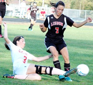 “I thought we came out really slow, not winning 50-50 balls that we normally win,” said Wiscasset coach Duane Goud. “Lisbon won a lot of balls, but we had several opportunities that we didn’t capitalize on. In the second half, the girls went for the winning goal and tried hard for this win.”