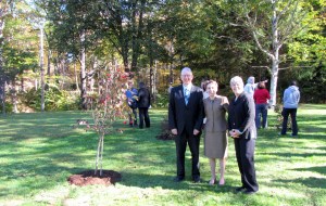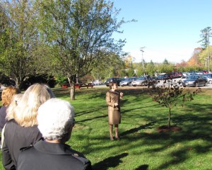 Park improvements were one of several projects undertaken to celebrate the anniversary, UMF President Kathryn Foster told a small gathering. Farmington Town Manager Richard Davis and Megan Roberts, daughter of former professor Gwilym Roberts, joined Foster, representing the university’s bond with the town during the past 150 years.