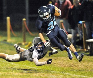 Tyler Frost broke loose for a 30-yard touchdown run in the second quarter. Dylan Kidder recovered a fumble on the goal line and Brett Beauschesne ran for a 1-yard score, with less than two minutes to play.