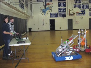 Dan Lemieux, leader of the Spruce Mountain High School robotics team in RSU 73, along with two of the 43 students on that team, presented a demonstration of robots created by the team. The district includes the towns of Jay, Livermore and Livermore Falls.