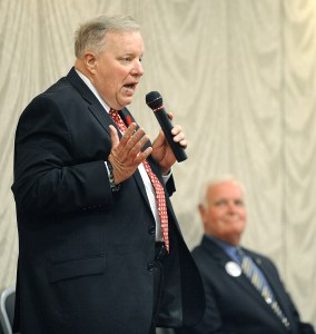 Mayor Robert Macdonald and challenger Larry Gilbert sparred over Macdonald’s history as mayor in the event sponsored by the Young Professionals of the Lewiston-Auburn Area.