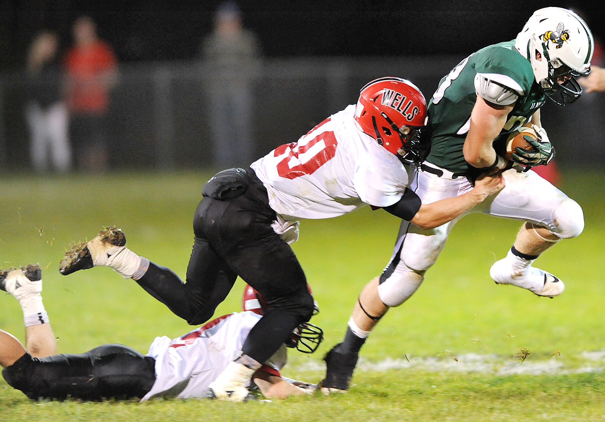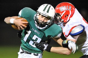 Led by two third-down completions from Nate Booth to Ryan Marsh, Wells marched 45 yards to its first score. Curtis, wearing a lineman’s number of 59, barreled up the middle on the fullback trap from six yards out.