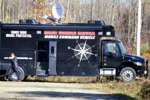Wardens and a K9 gather around the Maine Warden Service mobile command during the search for #AylaReynolds pic.twitter.com/bcxZHesc0s