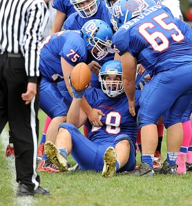 Lisbon crossed midfield again on its next possession. After the Greyhounds converted on fourth-and-inches, Washburn tripped-up Bourget for his second sack. On the next play, Mace came on a blind-side blitz and hit Bourget just as he was winding up to throw, jarring the ball loose. Washburn recovered it at Lisbon’s 36.
