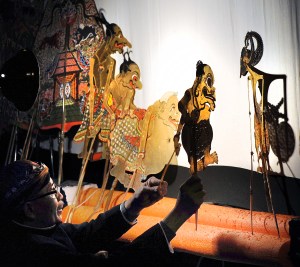Puppeteer Sumarsam performs for the crowd gathered at Olin Arts Center at Bates College Sunday afternoon. The Wayang Kulit Javanese Shadow Puppet Theater, along with the Bates Gamelan Ensemble put on a free show for the public at the Lewiston college. To find out when the next public performance is scheduled, visit the Bates website at: www.bates.edu/events.