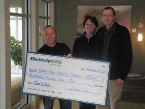 Kevin Dean, co-owner of Electricity Maine of Lewiston, recently presented a check for $500 to Esther and the Rev. Steve Bracy of the Western Maine Homeless Outreach Shelter. The donation will support the couple’s work at the Farmington shelter. The contribution was given as seed money for the shelter, which is based out of the Bracys’ Church, Living Waters Assembly of God. To learn more about Electricity Maine, go to www.powertohelpmaine.com.