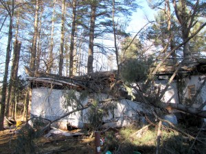 The back bedroom was crushed, and the ceiling in the bathroom of the 1974 trailer dropped.