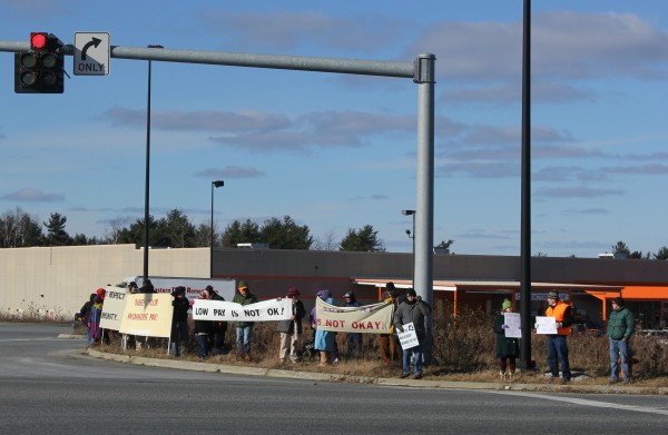 “My understanding is that they make between $17 billion and $23 billion in profits,” said picketer Joe Mailey of the company. “To hear that any of their workers have to seek out any kind of public assistance is just mind boggling to say the least.”