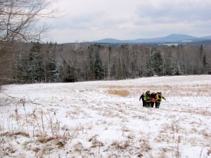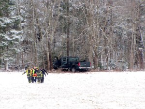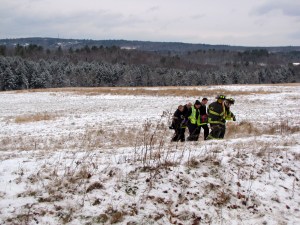 NorthStar Ambulance personnel, Wilton firefighters and Richardson lugged the driver on a backboard up through the field to a waiting ambulance on Route 133.