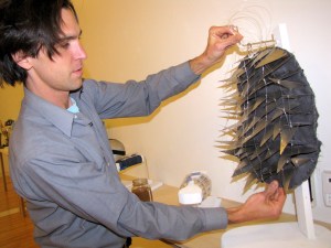 Pulling a cord on one project, metal spines of a breast plate rose to provide protection similar to a porcupine’s quills, he said. The student artist explored their own vulnerability.