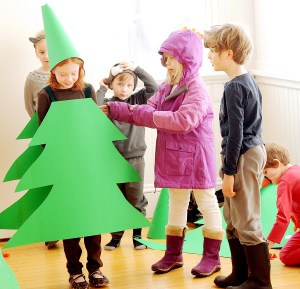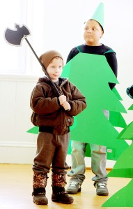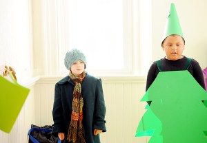 Joel Deane, 5, of Buckfield looks for the perfect Christmas tree as Isaiah Towns, 8, of Greene plays one of three trees during the SAD 52 Community Education performance of “The Littlest Christmas Tree” at the Turner Public Library on Saturday. Nine children performed under the direction of Penny Jaskalen of Turner. The cast will perform again at 7 p.m. Thursday at Leavitt Area High School.