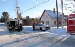 Andrews was on Lucy Knowles Road heading toward Knowlton Corner Road shortly after 2 p.m., Lyman said. When she came to the stop sign, the car hit ice and snow and slid on to Knowlton Corner Road and hit the pole, he said.