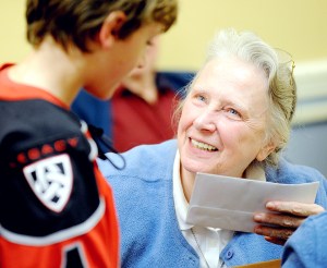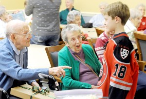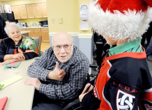 “I think it’s a really good way for the elderly folks to get gifts,” said Cam Cote, a 13-year-old hockey player in the Bantam League. “And to meet new people.”