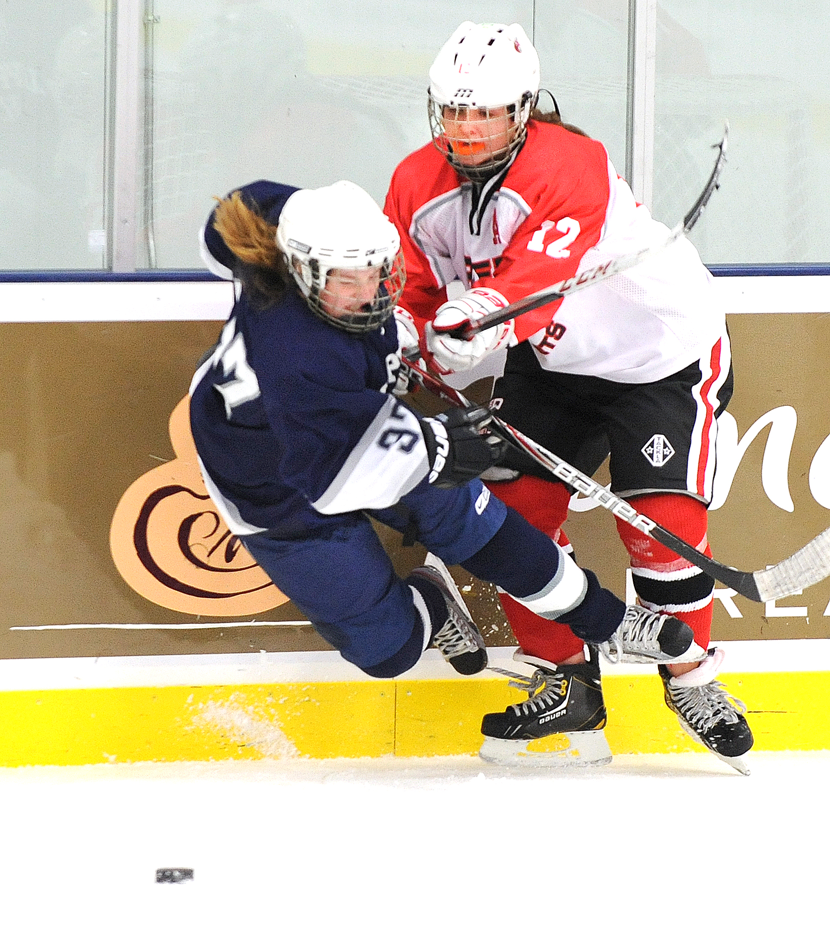 That persistence carried over to the Red Hornets’ forwards, who crashed the net for both of their goals in the first period. Landry poked home the rebound of Nadeau’s shot from the point at 2:54. A little less than 10 minutes later, junior Kristina Latlippe converted on a loose puck in front of the net for her first varsity goal.