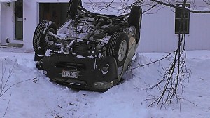 Potvin said the vehicle went into a spin before rolling onto its roof near the driveway of 154 Fish St.