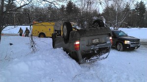 “The vehicle came within inches of striking a utility pole prior to rolling over,” Potvin said. “Driving too fast for the road conditions is the primary contributing factor in this crash.”