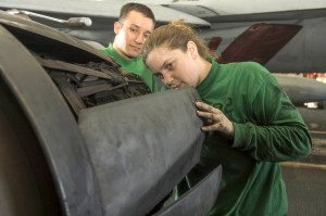 Along with engine mechanics, the work involves helping to launch and recover jets, troubleshooting problems and making sure the aircraft takes off on time from the carrier, she said.