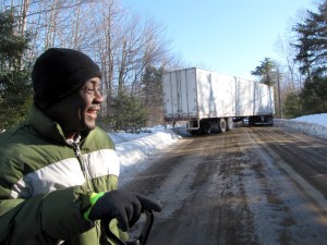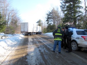 Part way up the hill, Gayetaye tried to get traction on the ice-rutted road, he said. He tried backing up to get traction when the trailer slid sideways, blocking the road near the intersection with the New Sharon Road.
