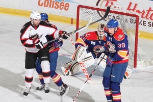 Emerson Etem got the puck past Visentin with 9:33 to play in the third after a boarding penalty to Brandon McMillan just 13 seconds earlier. Etem’s 11th of the season (in just 15 games) evened the game at 3-3.