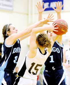 Dirigo had rallied to tie the game three times in the fourth. The third time was with 25 seconds left. St. Dom’s had opened a 35-33 lead on a drive by Pomerleau and a basket by Chloe Dwinell on an offensive rebound. Dirigo answered with two free throws by Lauren Henderson with 59 seconds left. Then Hutchinson finished off an inbounds pass to tie it 37-37.