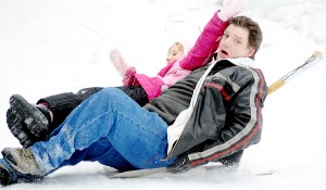 “It’s nice today, comfortable out here,” Caldwell said. His son, Jacob, 12, enjoyed sledding and snowboarding on the nearby hill.