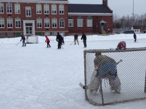 Daniel Desrochers of Auburn, a former Edward Little hockey player, was just finishing a game of pond hockey.