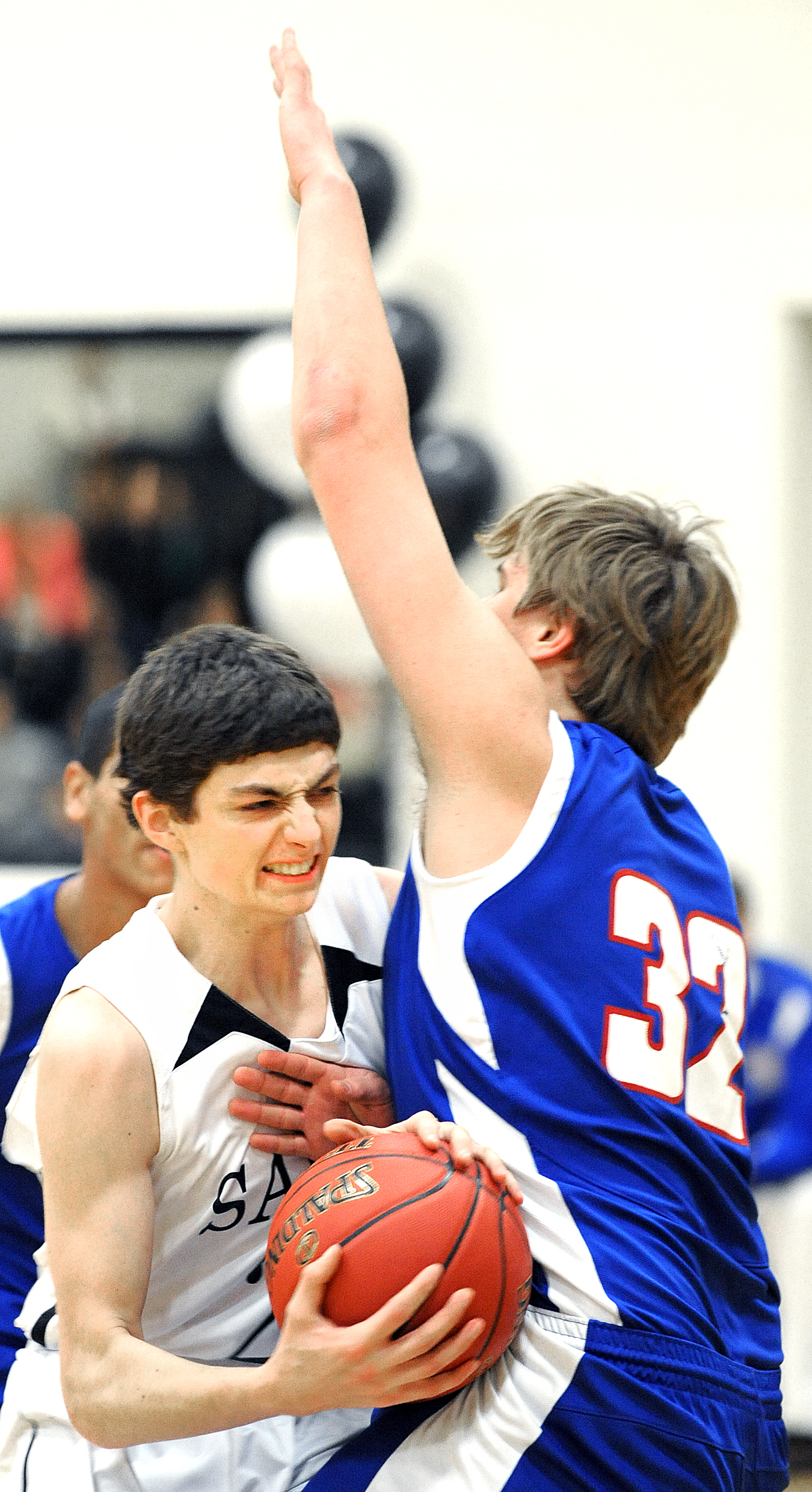 Led by Dyer’s 19 points, 14 rebounds, four assists, four steals and three blocked shots, the Saints closed down Callahan Family Gym for the season in style and kept their Class C West playoff hopes alive and kicking with a 50-41 victory over Oak Hill.