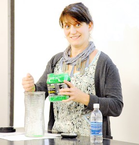 When it was two-thirds full, a few students tentatively lifted their hands. But the visual was not complete. When the jar was full of bright green pellets, Grego said it was still not enough to represent the nuclear weapons the government has at the ready.