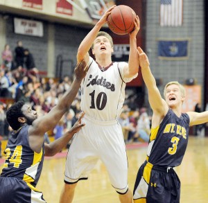Backus ended the Cougars’ drought with a pull-up jump shot from the free-throw line with 2:20 remaining in the quarter. On Mt. Blue’s next trip, Backus snared a 70-foot pass from Mittelstadt to start a 3-point play.
