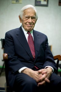 Pianist Frank Glazer sits in the green room of the Olin Arts Center before the concert begins for his 99th birthday celebration on Saturday at the Olin Arts Center Concert Hall at Bates College. He will turn 99 on Feb. 19.