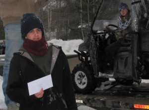 While other ticket prizes were being awarded, Konnor Robin and his family walked by headed for their car. Konnor was pulling his sister, Kylie Robin, both of Rumford, behind him in a plastic sled coming up from the pond.