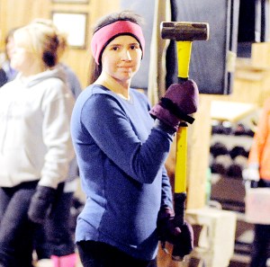 Inside, women wore hats, gloves and winter boots rather than sweats, sports bras and running shoes. Thirty women swung sledgehammers to Iron Maiden while their children played together outside in the snow during “Cub Class.”