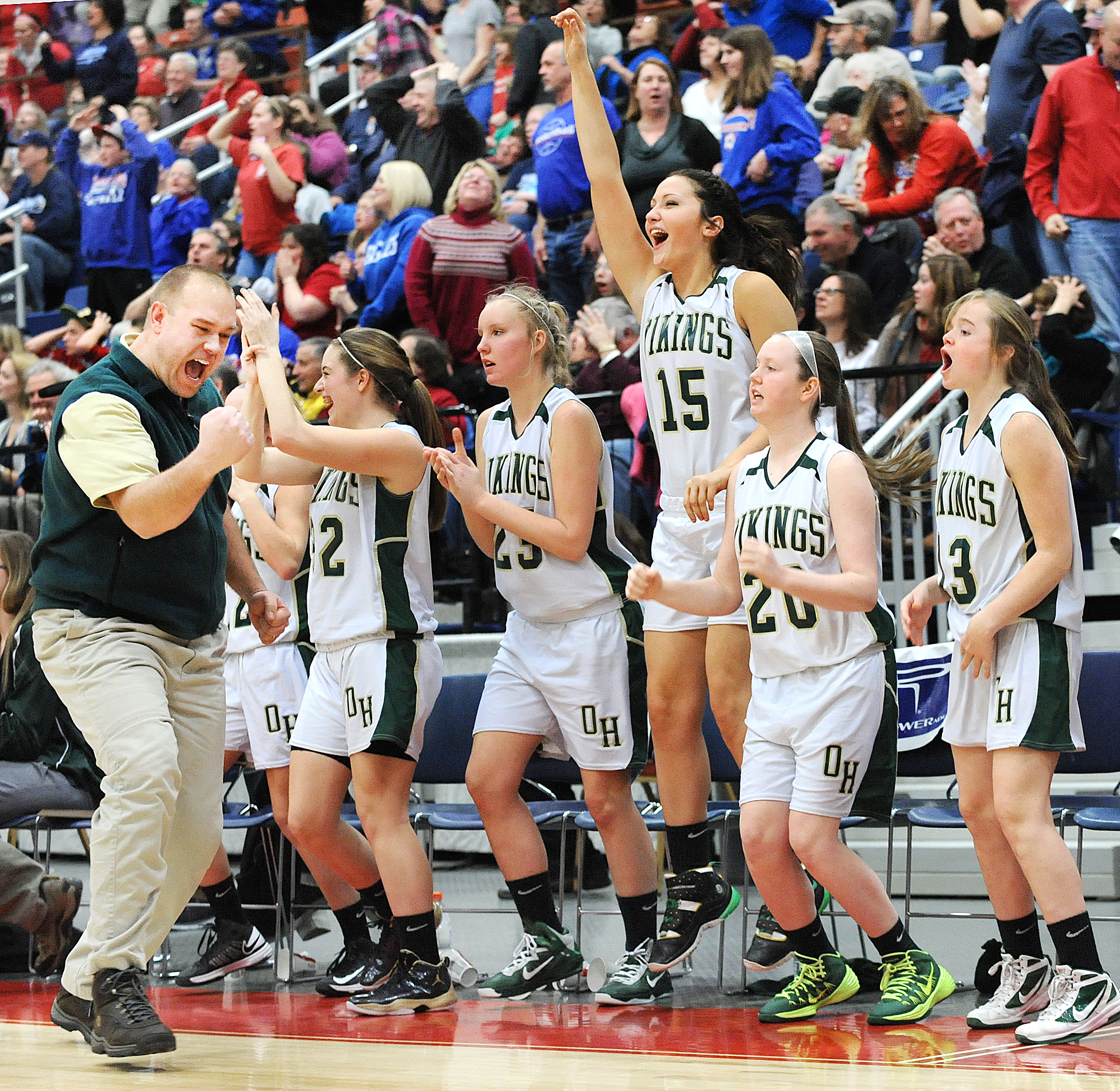 Sophomore center Tiana Sugars (four points, seven rebounds, three blocks), who had to be helped off the court after bruising her knee late in the third quarter, returned midway through the fourth and made it 32-28 Vikings on a putback. That would be their last field goal for the final 3:20.