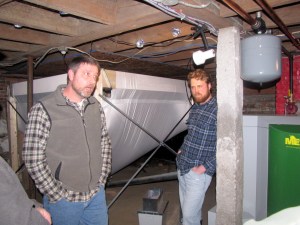 The homeowners were the first to have wood pellet boilers installed in December as part of the Model Neighborhood Project in Farmington and Wilton, said William Crandall of Western Maine Community Action.