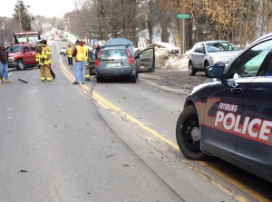 Two additional Fryeburg Rescue vehicles were called to assess the five occupants of the original ambulance, police said, as well as Berube. All occupants of the ambulance were examined and found not to be uninjured. The 14-month-old boy, who was not identified, continued to Memorial Hospital in a second ambulance.