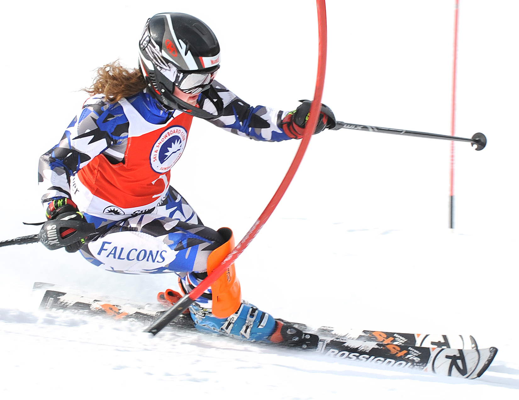 The Falcons soared to the Class C girls’ alpine ski championship at Sunday River, cruising to victory over defending champion Fort Kent in Friday’s slalom, 44-64, and winning the overall title by a 95-114 count.