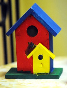 A birdhouse by Marshwood Center resident Kitty Carey sits on display and for sale at the rehabilitation center and nursing home Thursday in Lewiston. Any money from pieces sold by the residents went directly to the artists.