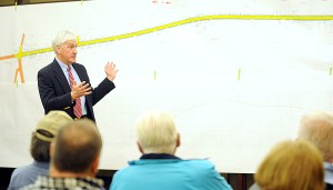 “This,” said Project Manager Paul MacDonald, pointing to a plan design that stretched almost all the way across an entire wall, “is only a draft. This is an evolving thing that we’re working on. We have a lot of hoops that we still have to jump through.”