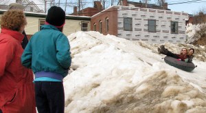 Others, already outfitted, stood in a growing line at the snow-tubing course near the Franklin Savings Bank steps.