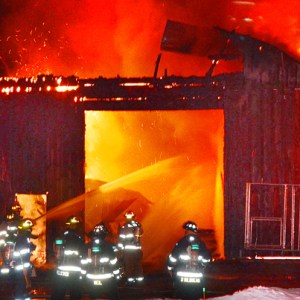 Several towns’ fire departments sent units to battle the blaze on Fish Street at Varney’s Labs, a business that sells Labrador retrievers.