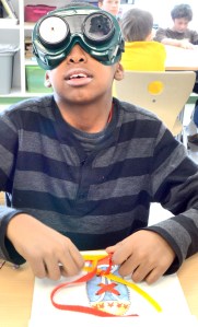 Park Avenue Elementary School sixth-grader Kalid Ahmed wears special glasses that simulate what a visually impaired person would see as he tries to tie a shoelace at the Auburn school Wednesday morning. Students were exposed to workshops, activities, music and a variety of lifestyles during their third annual Multicultural Day.