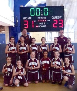 The Auburn fifth and sixth-grade girls’ basketball team added another title to its successful season. The girls captured the Brunswick Rec Department tournament sixth-grade title by defeating Westbrook, Gray-New Gloucester and Messalonskee. Member of the team are, front row: Serena Mower. Addison Dostie, Rebecca Raby, Lydia Celani, Emily Piper and Michelle Cowie; middle row: Anna LeBlanc, Chantel Ouellette, Lindsey Adams, Elizabeth Marcotte, Haley Ouellette and Caroline Hammond; back row: coaches Dave Ouellette and Chris Williamson.